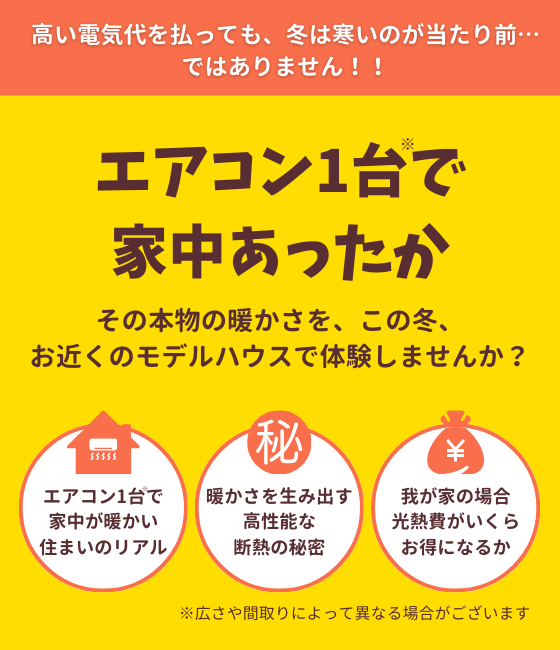 ホーム イベント予告 【長野稲田店】我慢しない冬へ。あったか住まいの体感会 日時12月25日(木)~1月31日(土) 場所アイフルホーム長野稲田店 地図 エアコン1台で家中あったか。 その本物の暖かさを、この冬、お近くのモデルハウスで体験しませんか? 【長野稲田店】我慢しない冬へ。あったか住まいの体感会 エアコン1台で家中あったか。その本物の暖かさを、この冬、お近くのモデルハウスで体験しませんか? 高い電気代を払っても、冬は寒いのが当たり前…ではありません!! もっと詳しく知りたい方におすすめ!